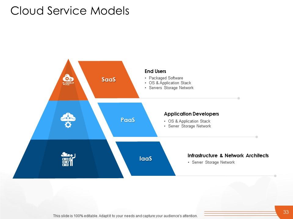 This slide includes the main models of the cloud. IaaS is used by network and infrastructure architects, PaaS is used by application developers, and SaaS is used by end consumers. Whether using standard software applications, developing and deploying applications, or handling the underlying network infrastructure, with the help of this slide users can choose the appropriate model to optimize resource allocation and improve operations. Get it in a click!