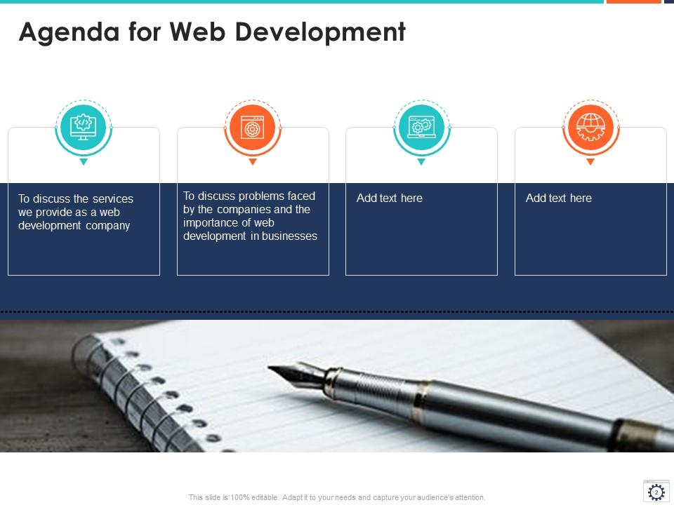 These PPT templates help you state the agenda and plans for web development with eye-catching visuals.